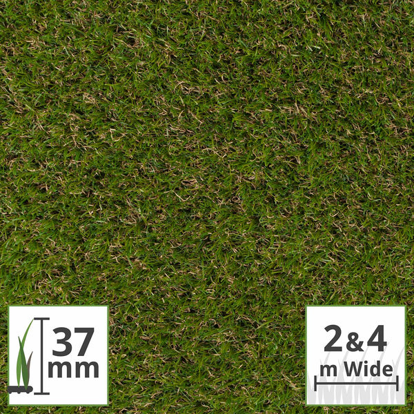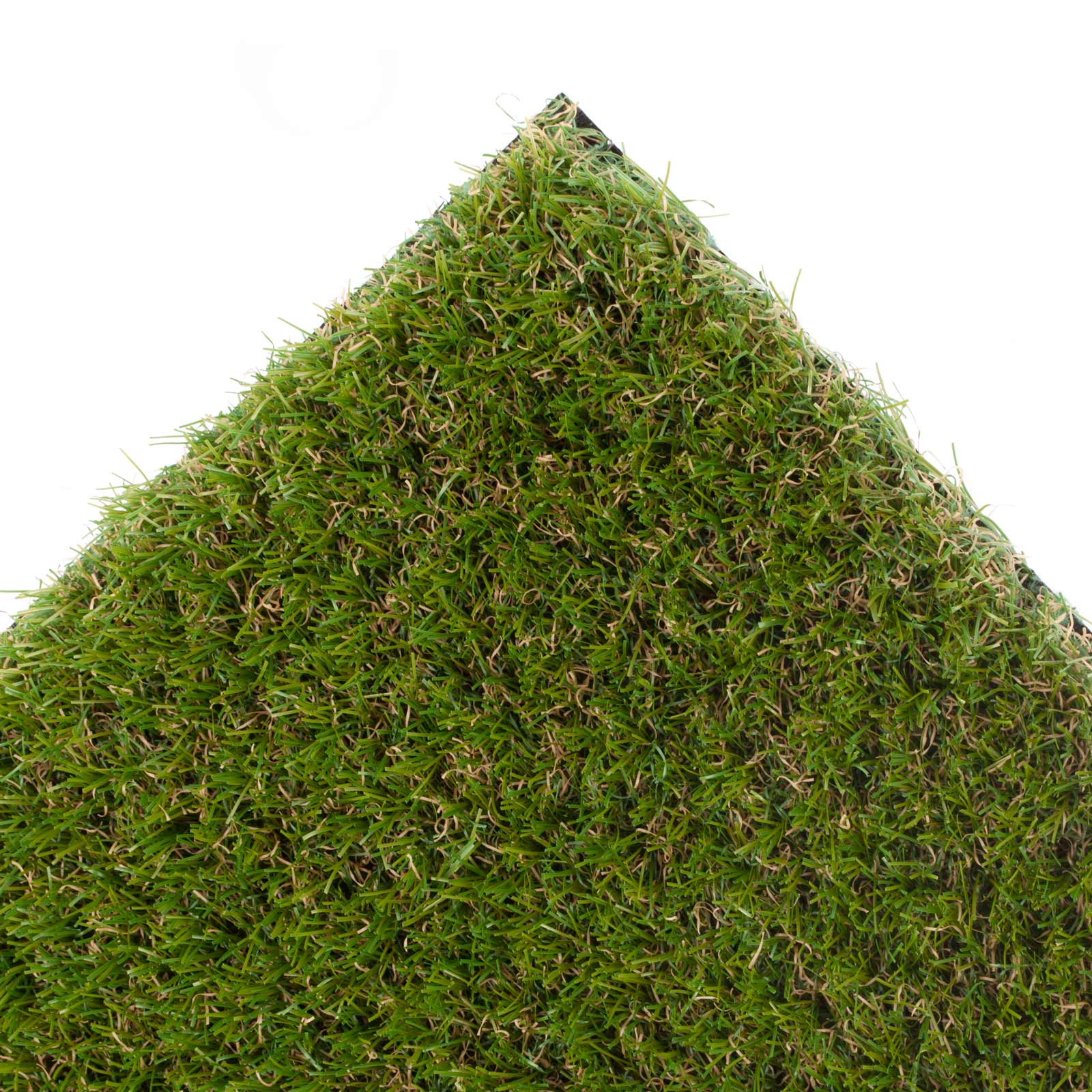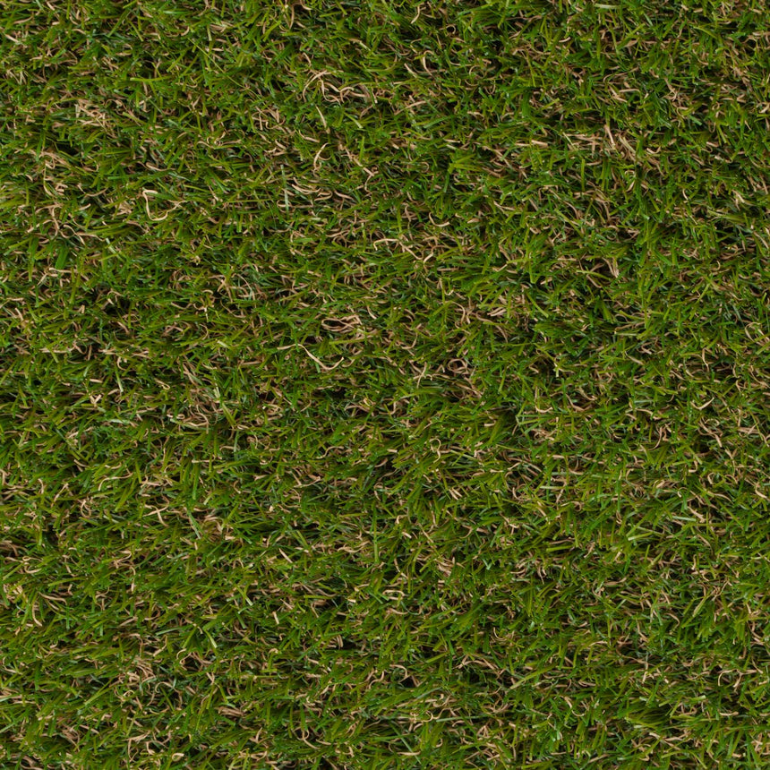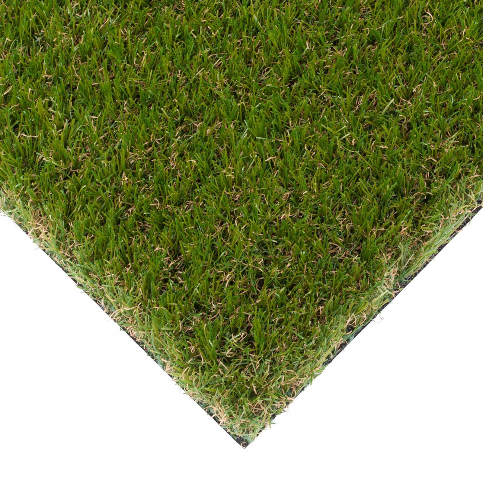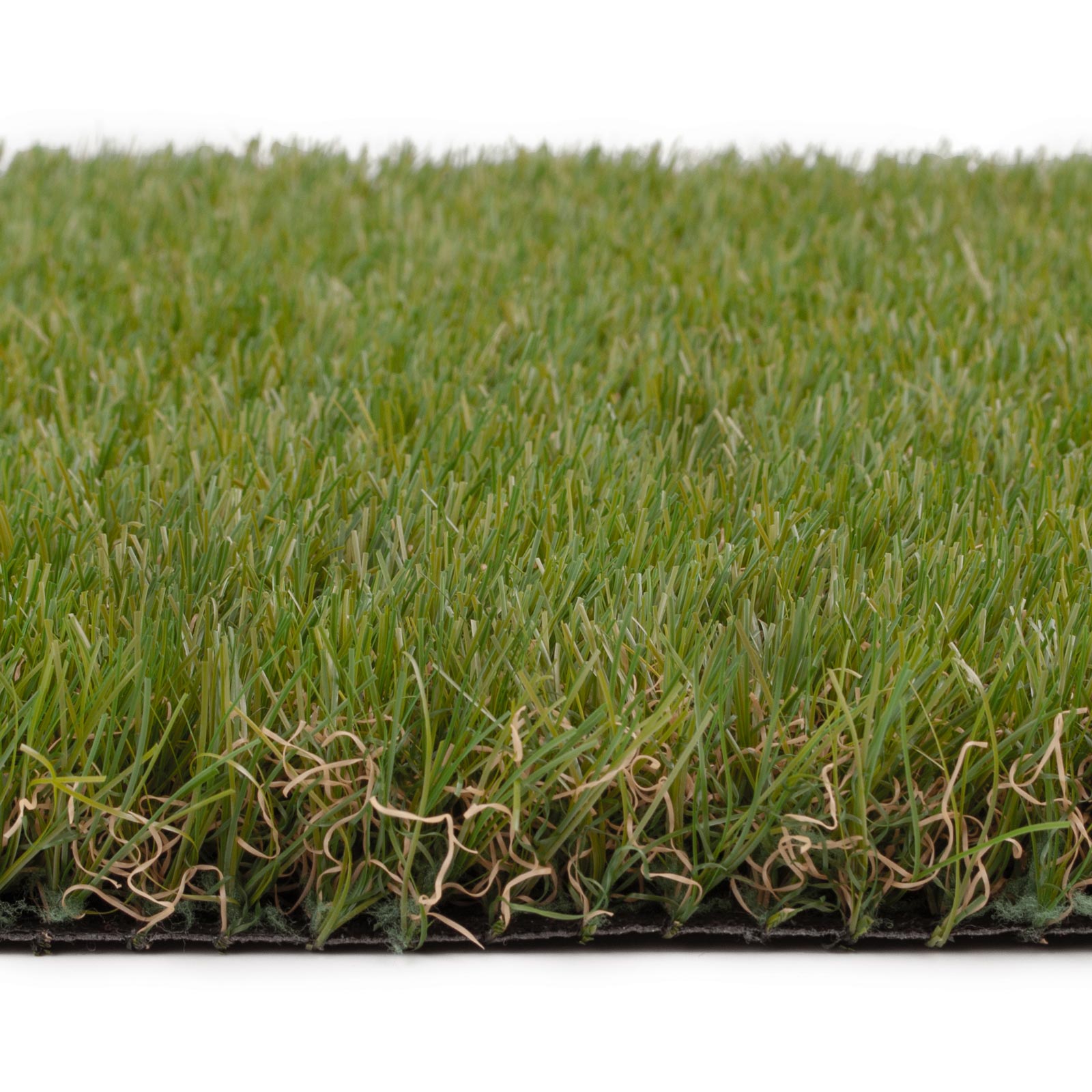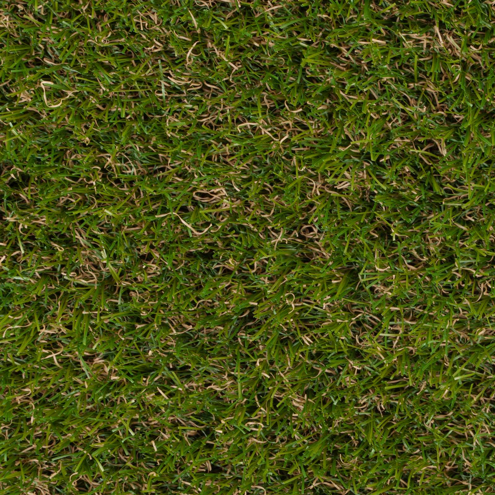 This grass has a mix of greens in the 35mm blades for a natural colour, with dark green and light brown curled base fibres to add extra realism and bounce to your lawn. The thick pile gives your garden an established look, and there’s virtually no maintenance.