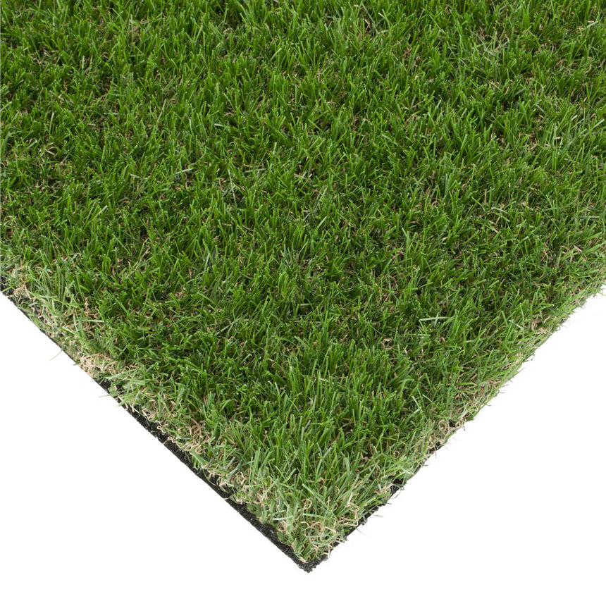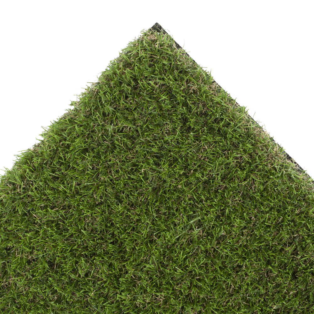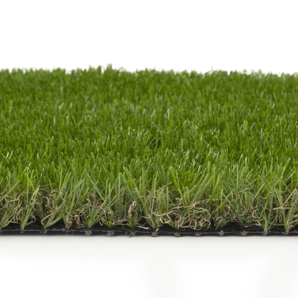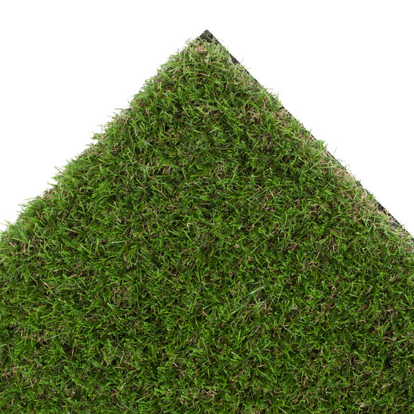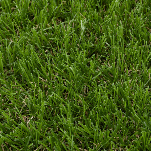 This 30mm thick artificial grass has a soft 28mm pile that uses a mix of straight blades and curled base fibres for a lifelike look and a comfortable feel. A mix of greens and browns gives the grass a realistic appearance that needs no mowing or watering and little to no maintenance.