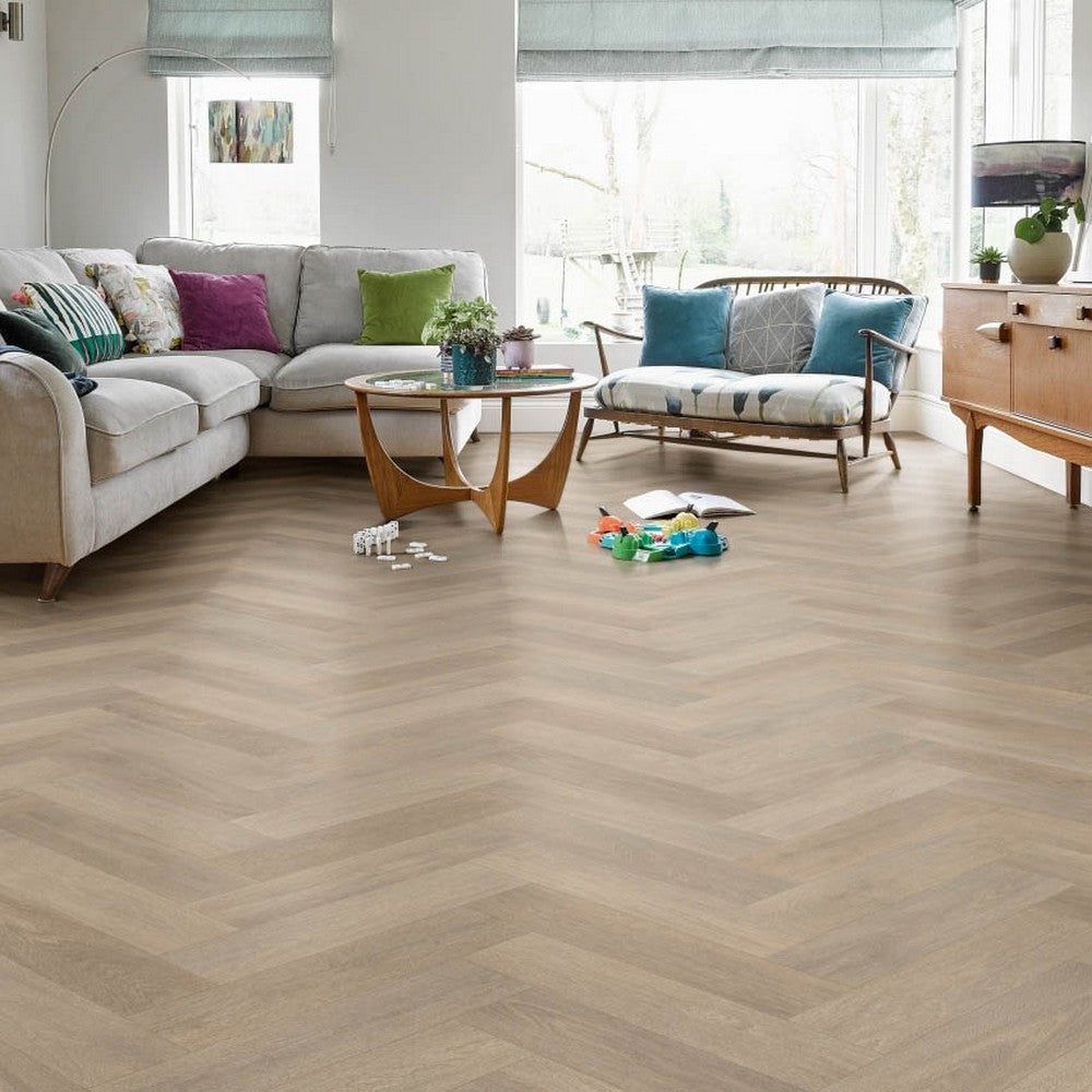 Add a warm and inviting parquet style with this Patagonia 533 Solitex Wood Vinyl Flooring. The cosy beige hue makes this vinyl a wonderful companion to many rooms.