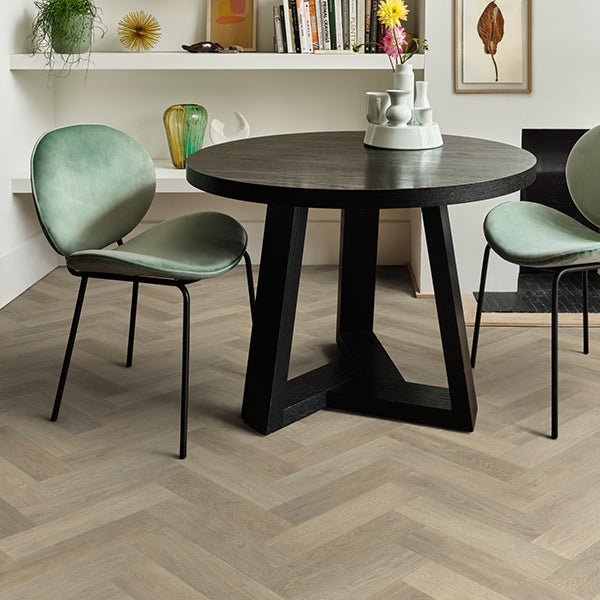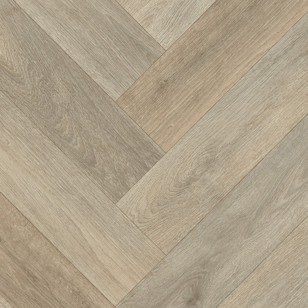 11.8cm x 47.2cm planks are arranged in a fantastically true to life herringbone arrangement. The dusky beige hues give this vinyl an antique vibe that looks amazing in both traditional and contemporary style rooms. This vinyl is an exceptional alternative to real wood with its easy to clean matt surface and R10 slip resistance rating.