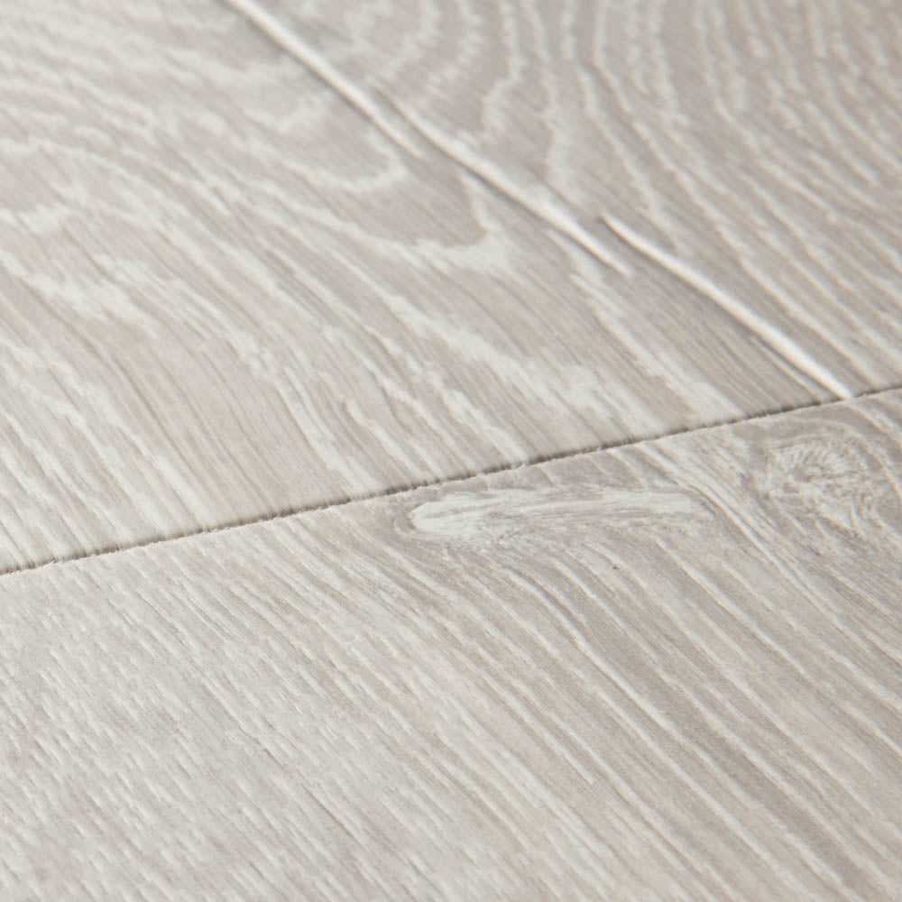 Light and elegant, this Patina Classic Oak Grey IM3560 Impressive 8mm Laminate Flooring adds a fantastically versatile look to your floor. This Quick-Step laminate is both waterproof and scratch resistant and comes with an AC4 rating, perfect for everywhere from halls and bathrooms to kitchens and living rooms.