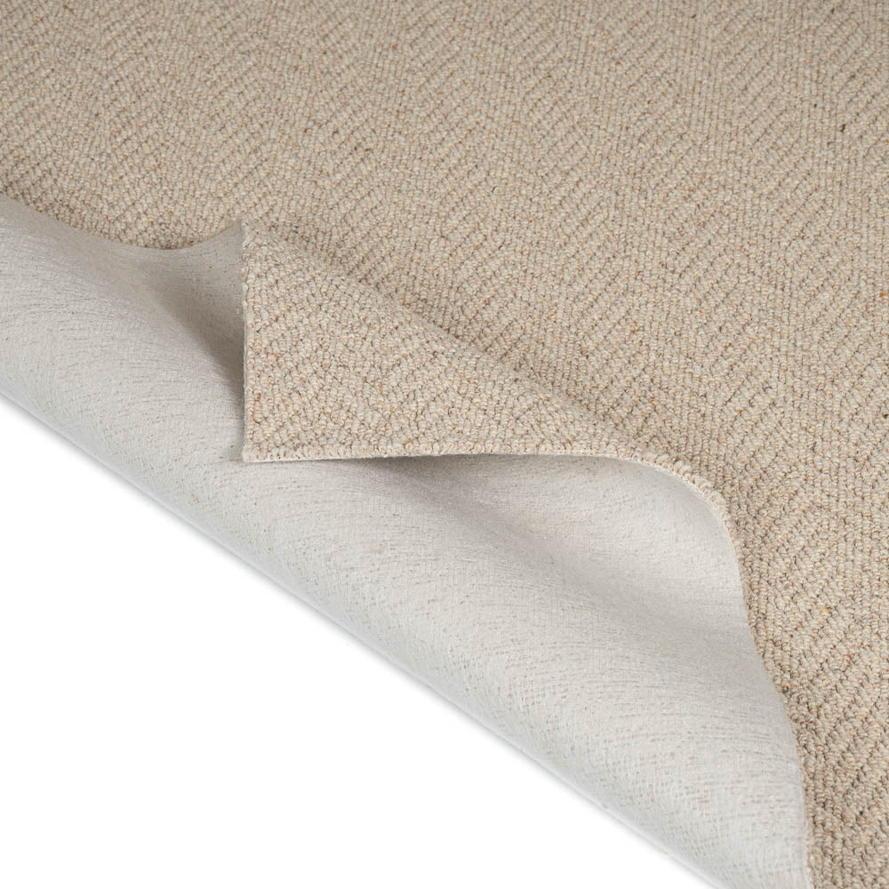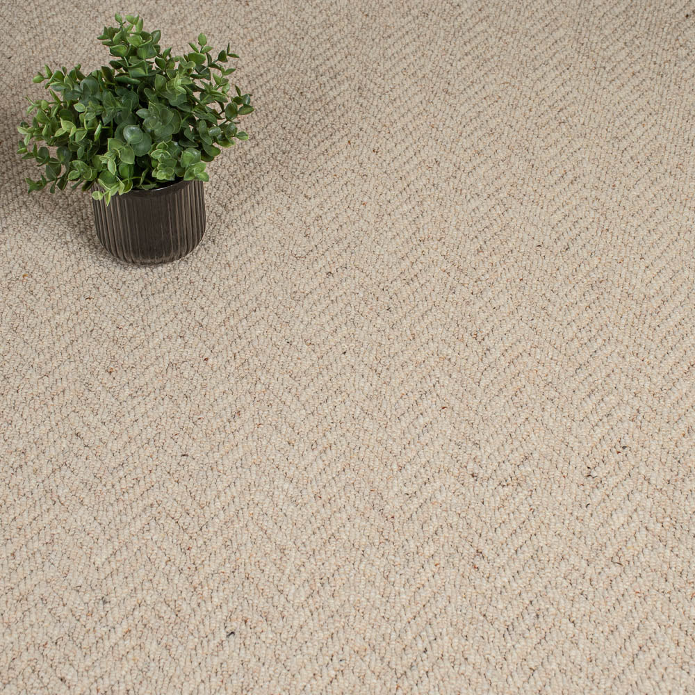 Warm beige tones and a natural fleck give this Pine Royal Sterling Wool Loop Carpet a magnificently cosy look. Its wool loop pile gives this carpet a bouncy feel underfoot and the different loop heights create a clear herringbone design across your floor. This fusion backed carpet from Abingdon Flooring is a perfect complement to a host of livening rooms, bedrooms, halls, stairs and many other rooms.