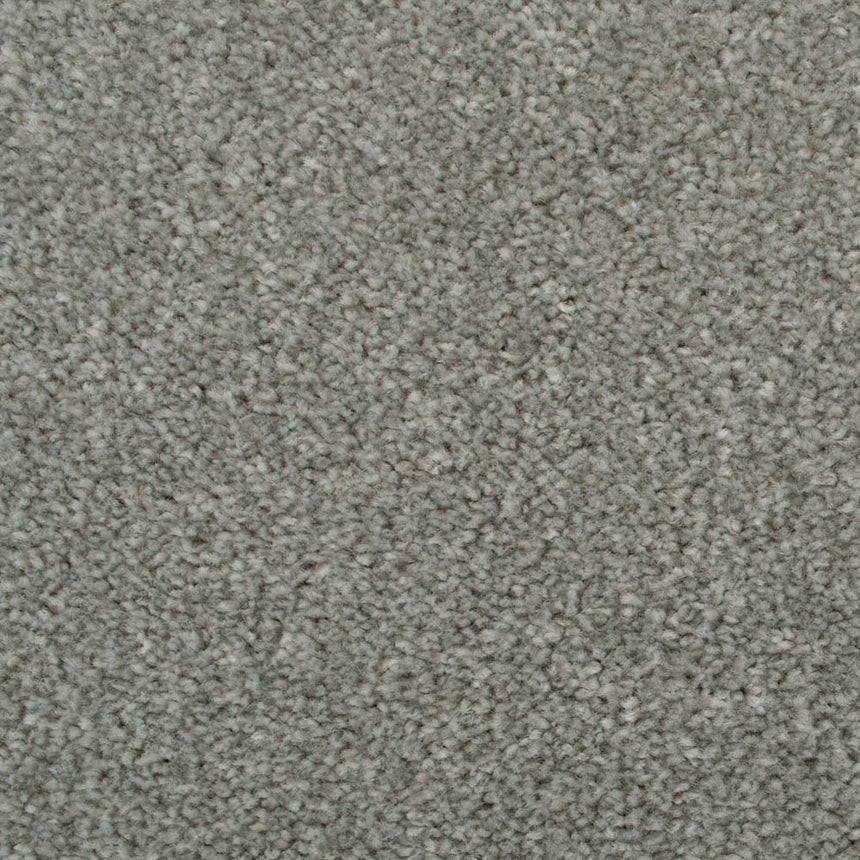 This Platinum Mirage Saxony Carpet has an elegant grey hue and a subtle heathered appearance.