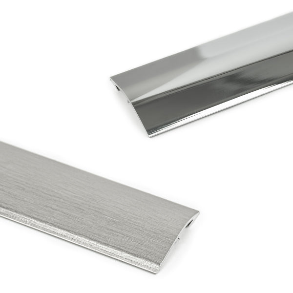 9ft (2.7m) lengths are available with a variety of finishes. The brilliant highly reflective chrome and stunning brushed metal finishes create an elegant look across your floor and look amazing with a multitude of styles.