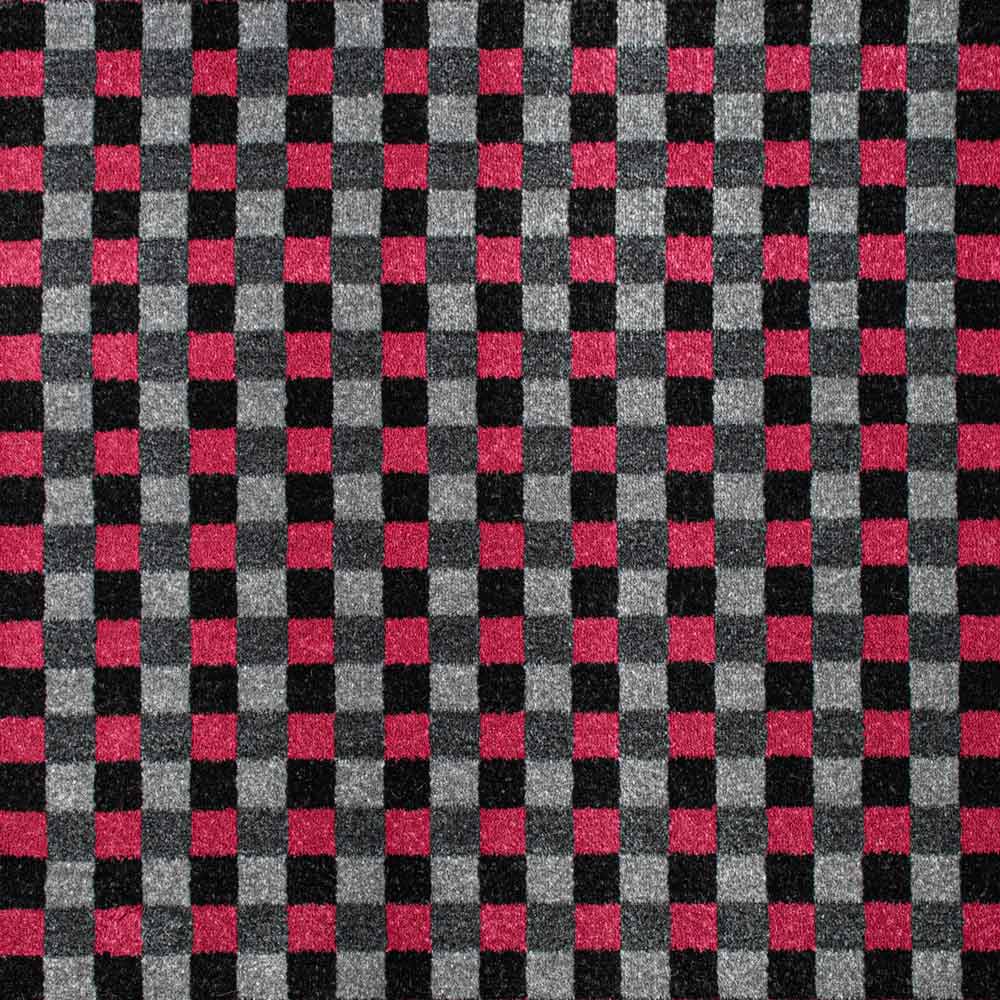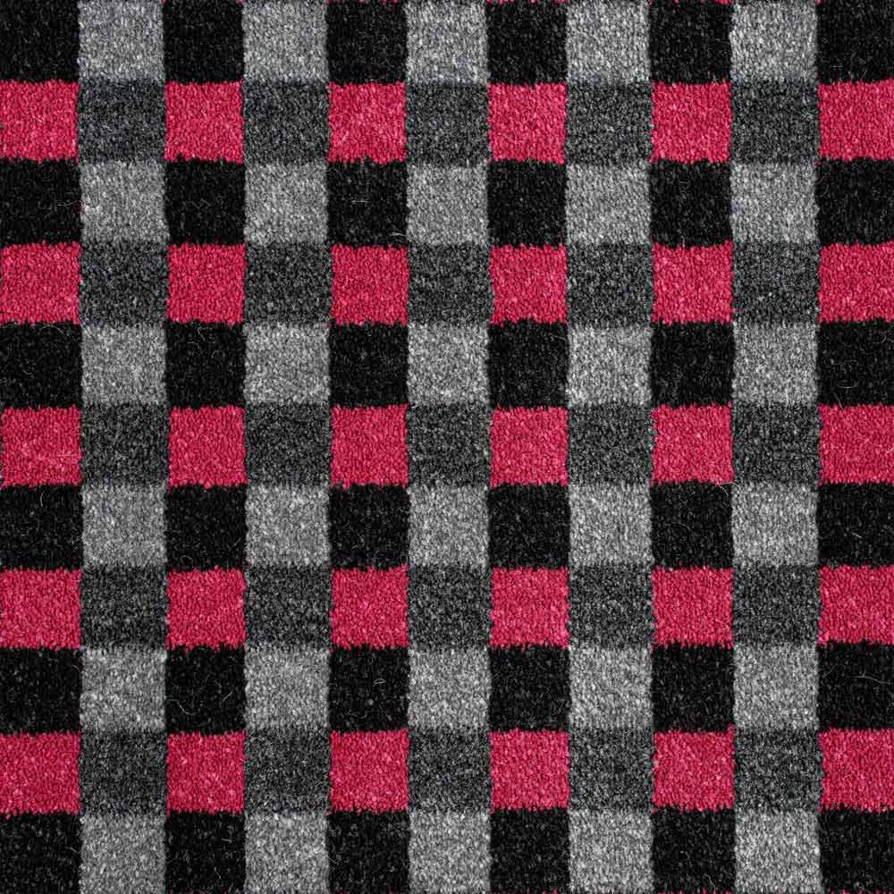 Be bold with this fantastic Raspberry Red Gingham Wilton Carpet. The combination of warm grey lines with the dynamic red 26mm x 26mm squares gives this carpet its unique chequered look.
