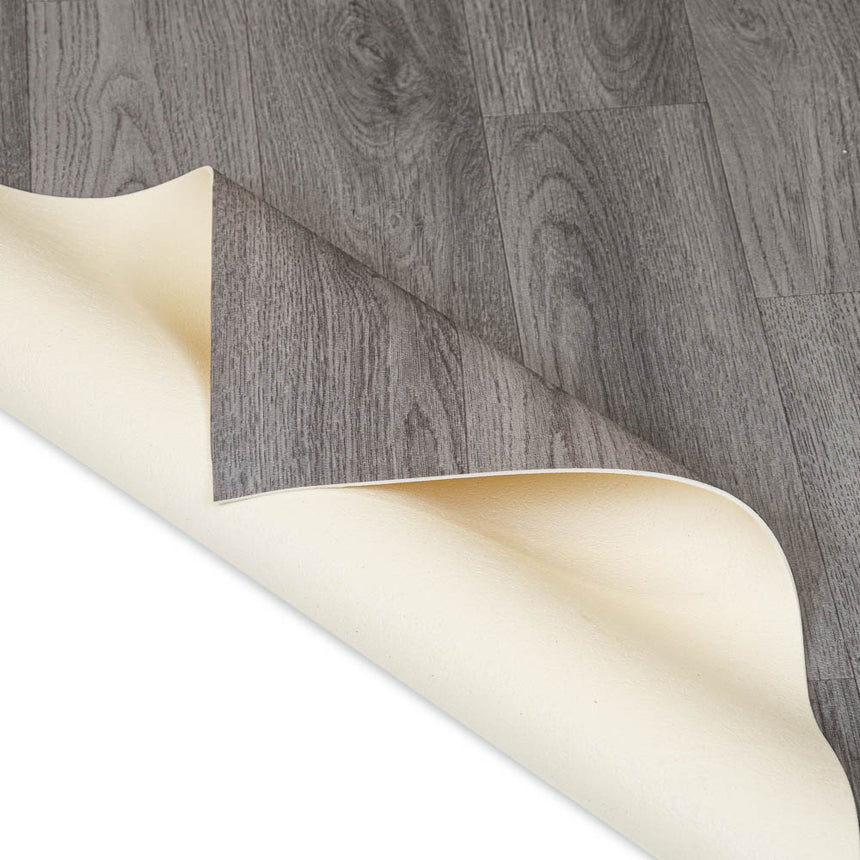 Add a rich wood appearance to your home with this gorgeously lifelike vinyl and its clear wood grain, joins and shading. The planks in this vinyl's pattern are 12.5cm wide with random length to give it a more natural style to complement its versatile grey hues. Its matt finish and R10 slip resistance rating, this vinyl looks and feels fantastic.
