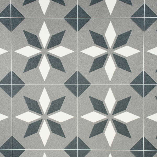 This stunning Scottsdale 907M Arizona Tile Vinyl Flooring has a brilliant geometric star pattern that looks amazing in any contemporary or traditional room. The tile style design with its matt finish adds a realistic look to your floor.