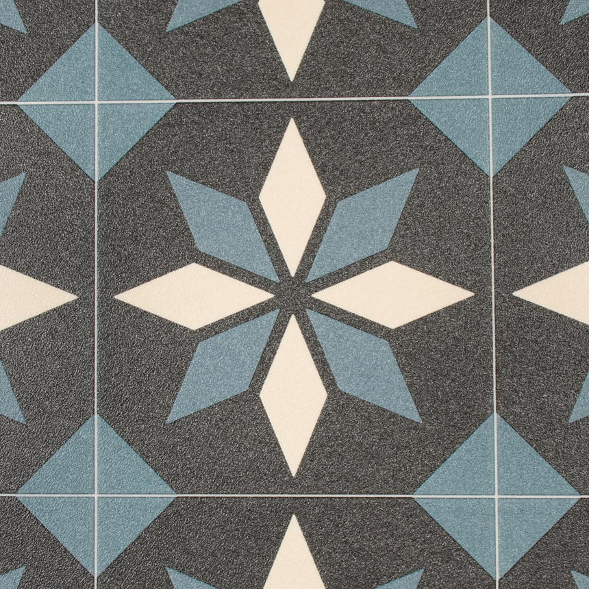 Add a creative and beautiful pattern to your floor with this Scottsdale 927D Arizona Tile Vinyl Flooring. The mix of cream, blue and black with lighter grouting lines gives this vinyl a fantastic modern look with a realistic touch.
