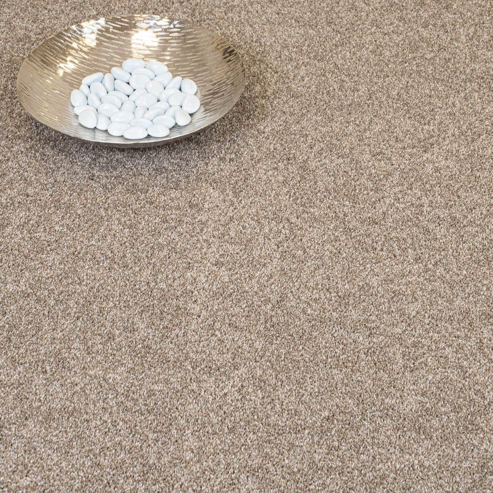 With its warm flecked brown hue, this carpet is a wonderful option for complementing traditional style rooms and wood furnishings or for adding a brilliant contrast with cool modern shades . Made from polyester, this carpet’s 13.5mm tufts are stain resistant and help create the beautiful cream and dusky brown shades.