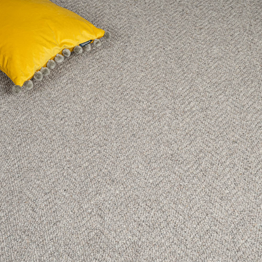 This warm grey Smoke Royal Sterling Wool Loop Carpet from Abingdon Flooring blends a superb feel, naturally flecked tones and striking design. With its wool pile, this carpet has a comfortable spring to it and the multiple sized loops create a textured design. Made in the UK, this quality carpet is an amazing choice for living rooms and bedrooms while also being a great option for more heavily used areas like halls and stairs.