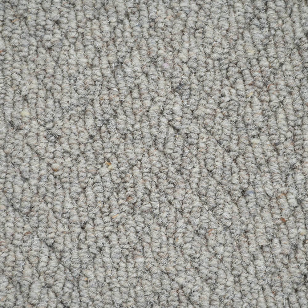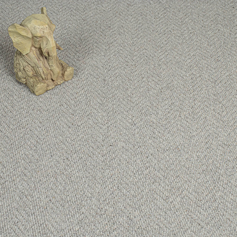 Admire the sophisticated comfort of this Squirrel Royal Sterling Wool Loop Carpet with its springy 5mm loop pile and textured herringbone pattern. This British made Abingdon carpet gives your living rooms, hall, bedroom or stair a fabulous feel underfoot due to its 100% wool pile. The light grey hue is complemented by natural flecks that help it to complement even more room styles and colours.