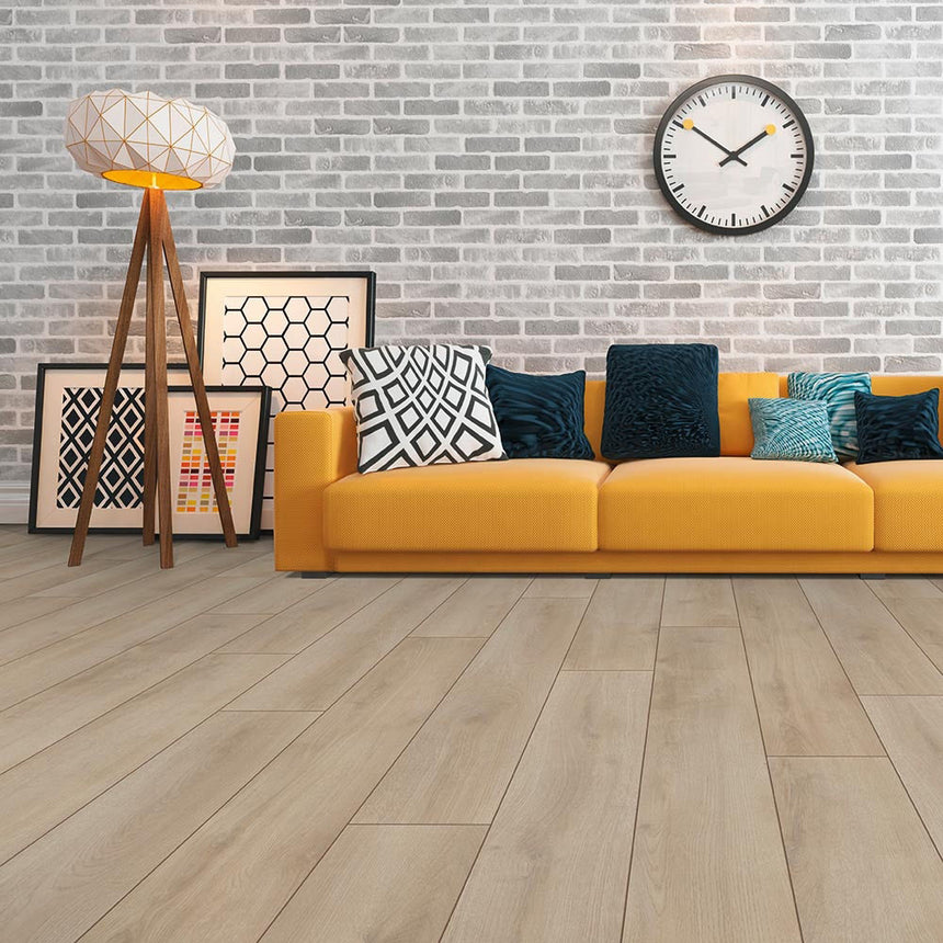 The Summer Oak Beige Kronotex Advanced 8mm Laminate Flooring is 8mm thick and packs a resilient heavy domestic rating which means this laminate is suitable for busy homes and commercial environments with increased foot traffic.