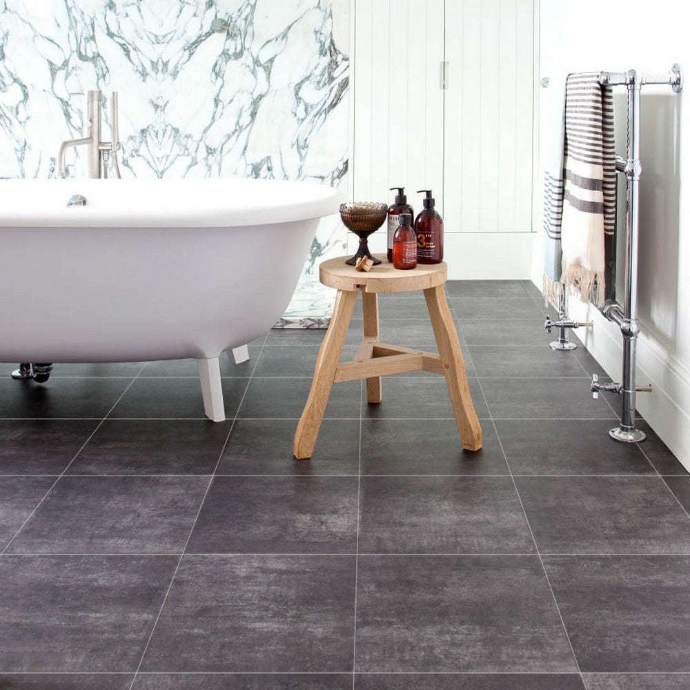 The dark grey and black shades give this vinyl a lifelike slate tile appearance that can be paired with a host of room colours and décor. To add to its realism, this vinyl comes with a 33.3cm x 33.3cm tile pattern, grouting lines and a matt finish. This vinyl is easy to clean and comes in an easy to fit sheet design.