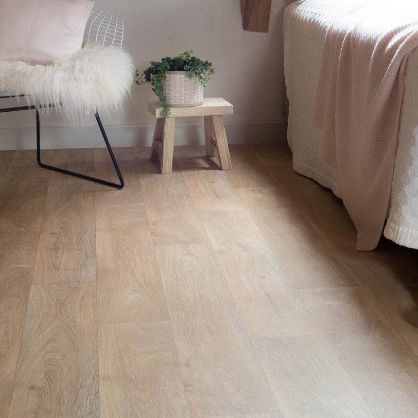 With its recycled felt backing this vinyl has a warmer and more comfortable feel underfoot. The 2.4mm backing can also help to fit this vinyl in even more places as it can help to reduce the impact of small imperfection in the subfloor on the final surface. A water resistant 0.4mm wear layer makes this durable lino a great addition everywhere from kitchens to bathrooms and many others.