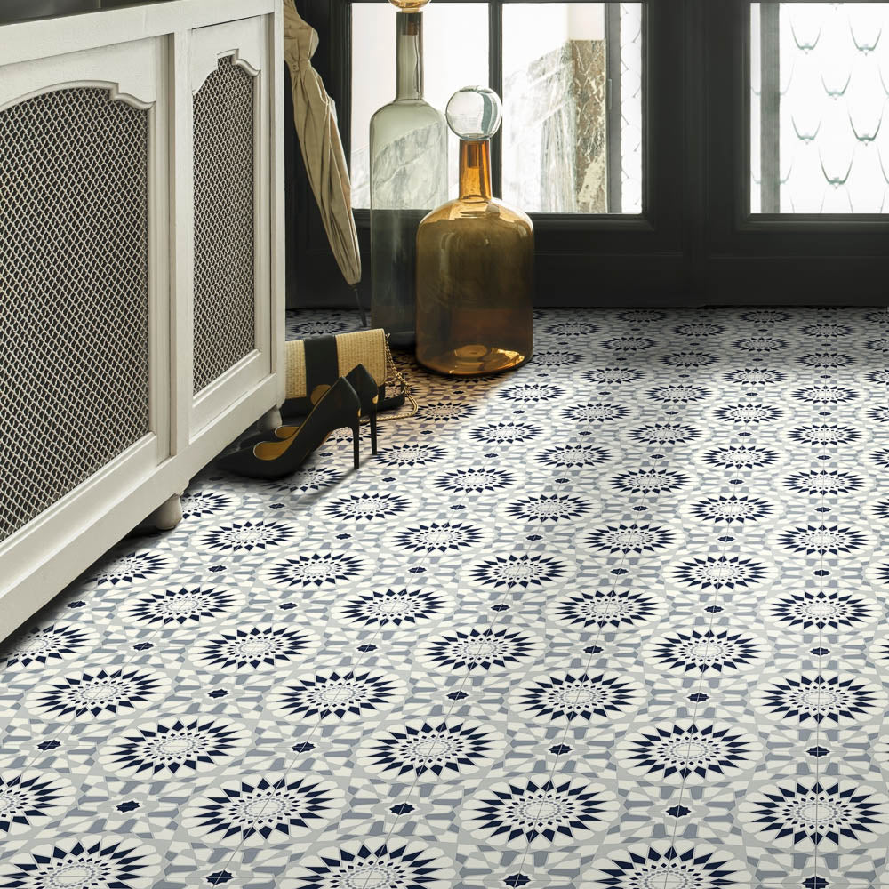 With its unique design and rich hues, this vinyl adds a 16.6cm x 16.6cm tile effect to your floor with its textured grouting lines. The cool blue tones make a beautiful contrast to many traditional hues and furnishings as well as suiting multiple modern styles. Its matt surface and R10 slip resistance rating add to the beautiful look of this vinyl and are easy to clean and feel fantastic underfoot.