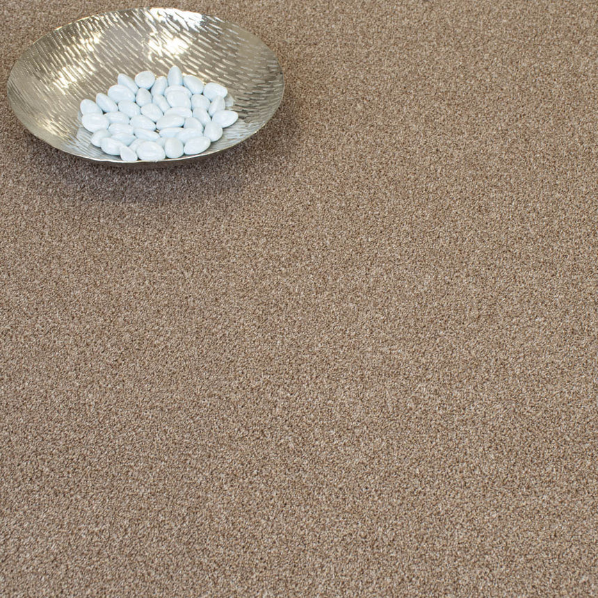This carpet has a warm colour and a comfy feel with its heathered 8mm saxony pile. A mix of cream, light beige and warm beige fibres gives this carpet its distinctive look and makes it easy to match to a wide range of other colours and many room styles. With a pile made from polypropylene tufts, this carpet is hardwearing, stain resistant and dilute bleach cleanable, ideal for any busy room.