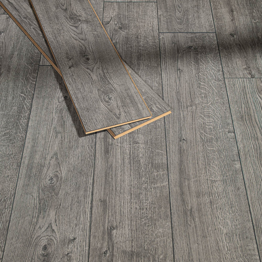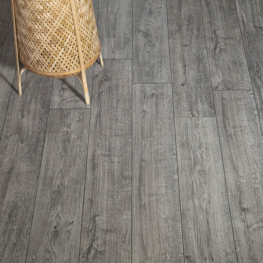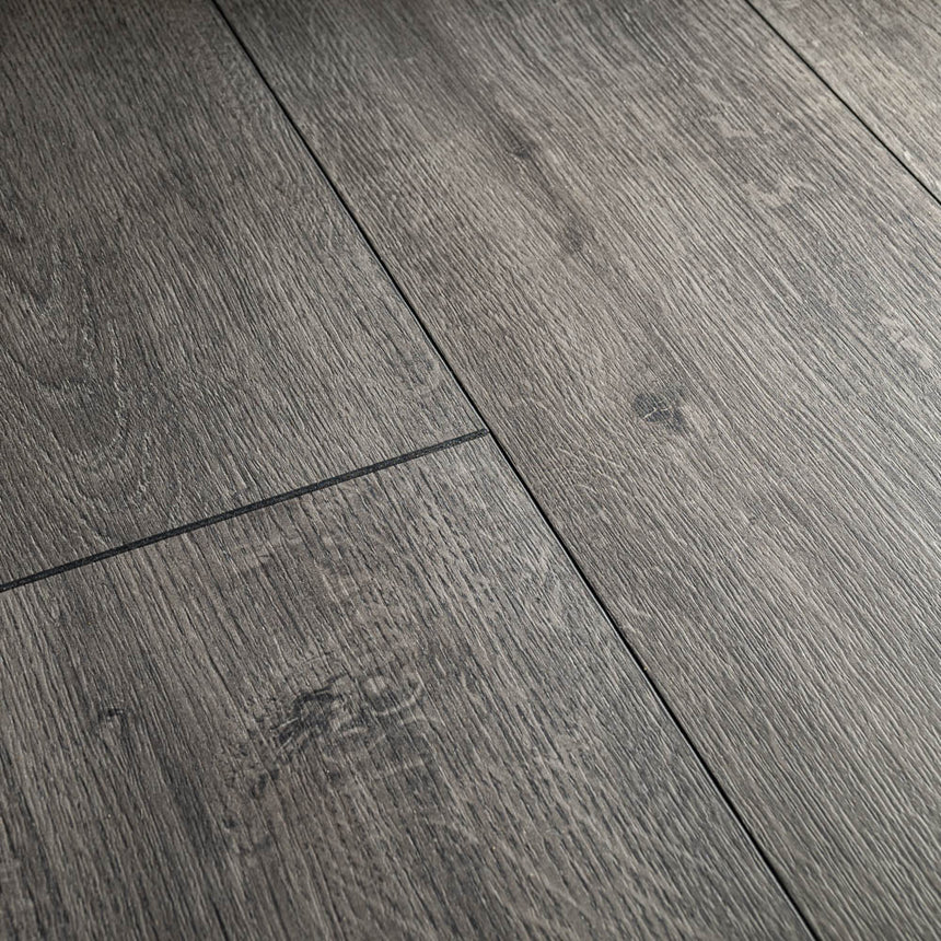 The dark grey tones make this laminate exceedingly versatile as it can complement a multitude of colour and modern and traditional style alike. Its 197mm x 1205mm planks add to this laminates lifelike look with an intricate design and bevelled edges that create a v-groove in the join.